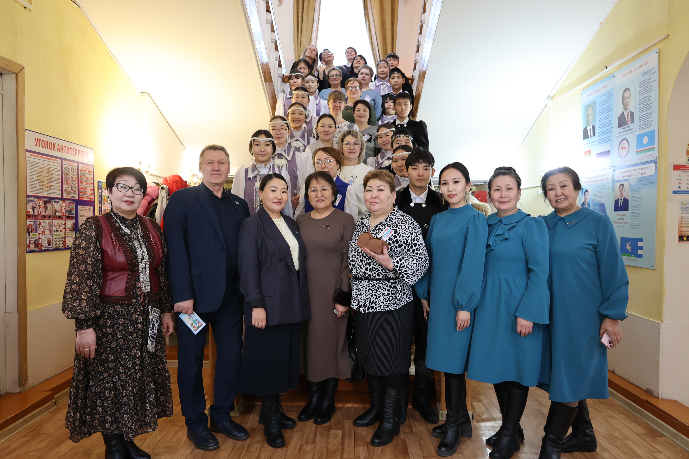 В Год единства народов России и Год культуры в Республике Саха (Якутия) с 25-27 февраля 2026 г. Мегино-Кангаласский улус посетила делегация из 54 работников образования дружественного Алданского района во главе с начальником Департамента образования Еленой Ивановной Хрущ. В составе делегации руководители образовательных организаций, педагоги, специалисты Департамента. Они посетили школы, детские сады, учреждения дополнительного образования детей, Транспортный техникум в Нижнем Бе