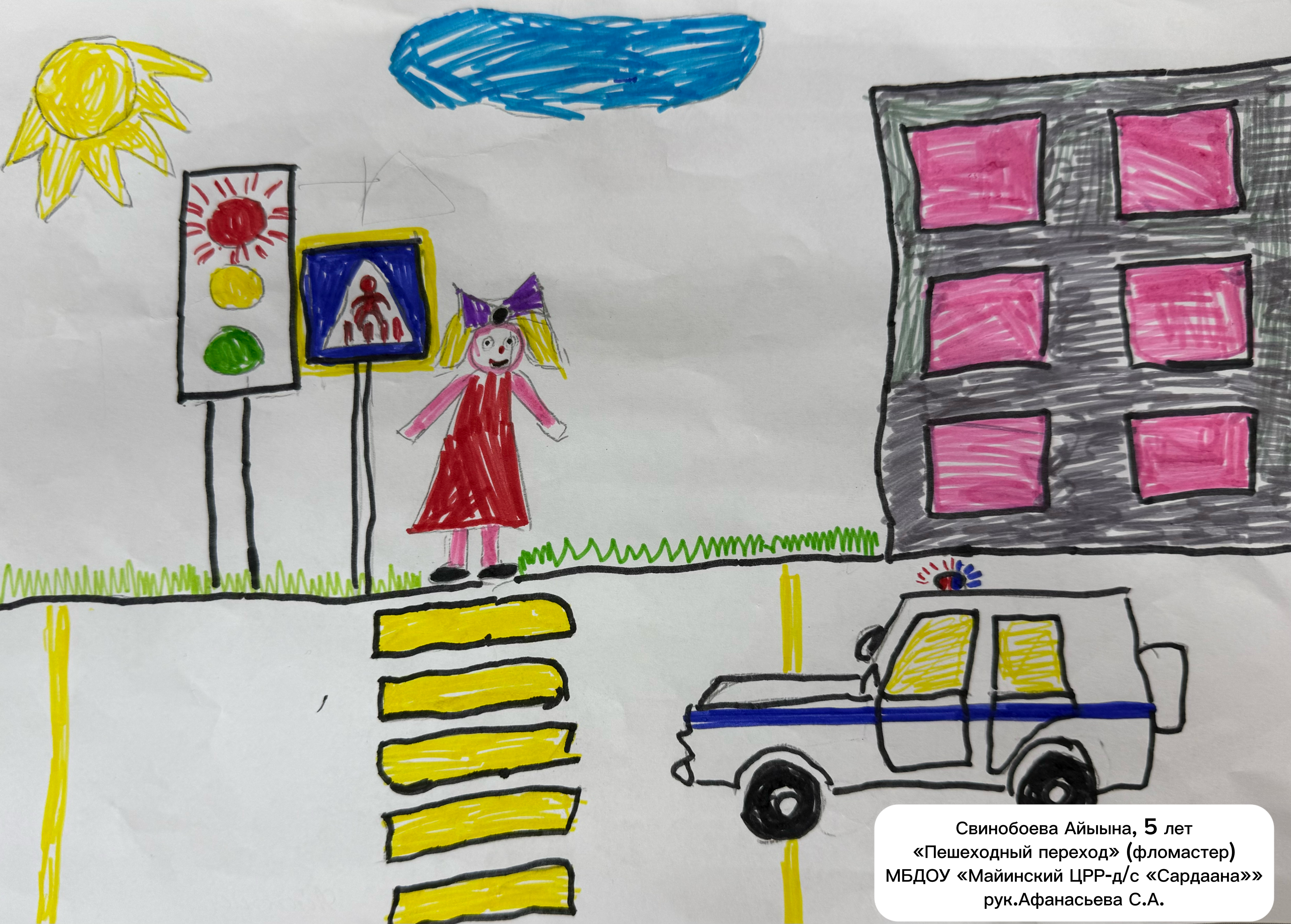 Жюри под председательством инспектора по пропаганде БДД ОГАИ ОМВД России по Мегино-Кангаласскому району Васильевой Александры Николаевны оценили работы детей.