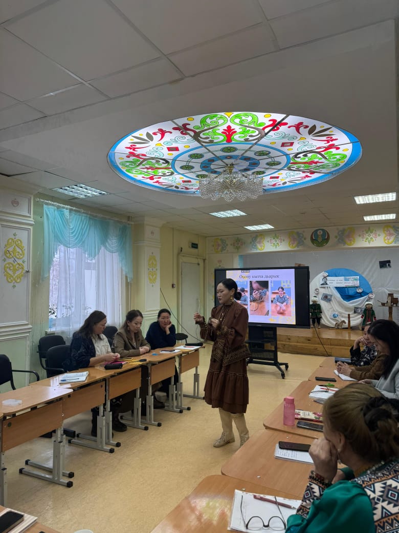 Семинар сыала: төрөөбүт сахабыт тылын үөрэтиигэ, саха оҕотун иитиигэ төрүт дьарыктарбытыгар тирэҕирэн оҕону сайыннарыы. Уопсайа 20 учуутал кыттыыны ылла.