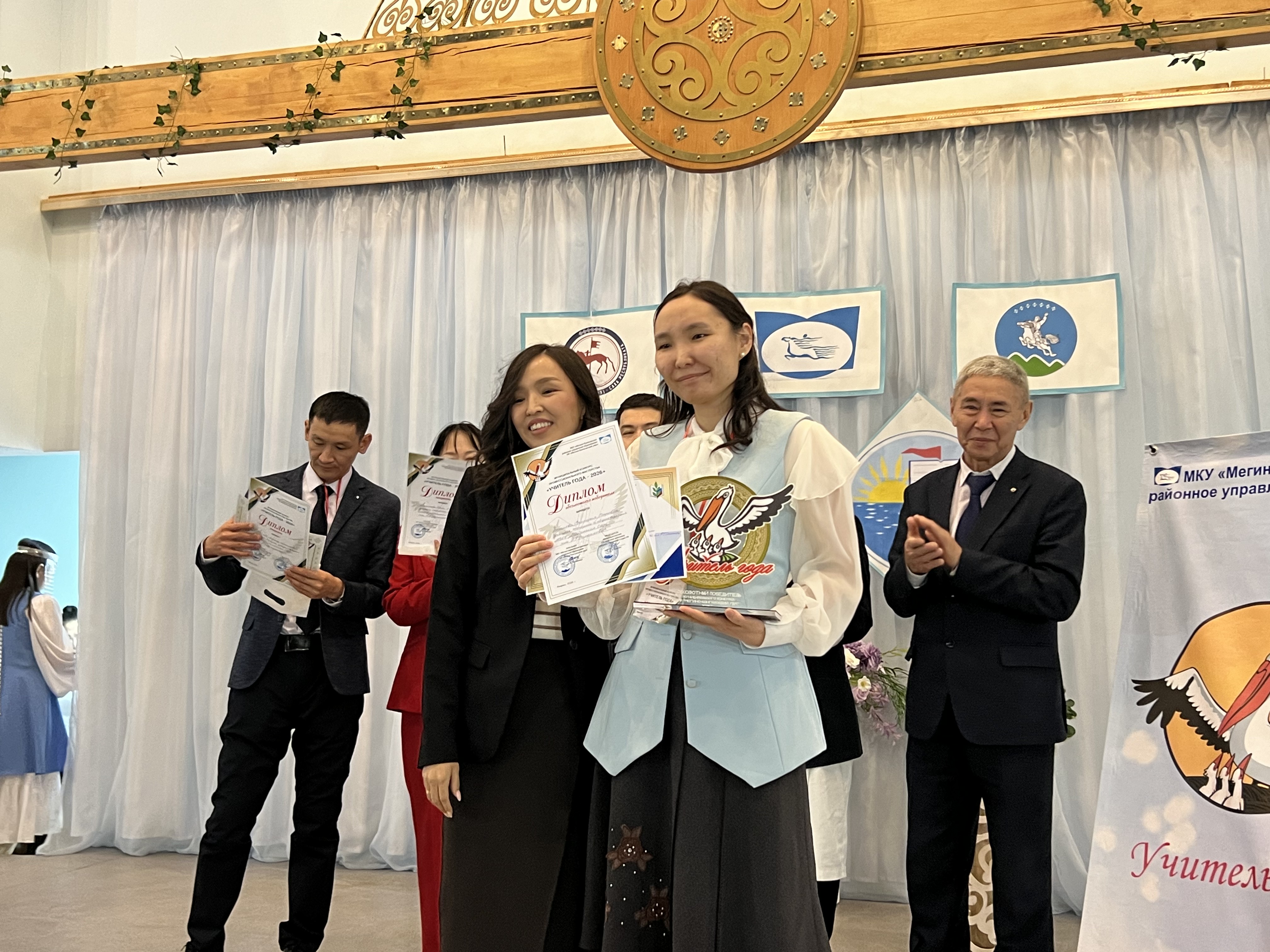 Күрэхтэр абсолютнай кыайыылаахтарыгар уонна лауреаттарыгар бириистэри туруорбут үөрэҕирии үлэһиттэрин профсоюһун улуустааҕы территориальнай тэрилтэтигэр (бэрэссэдээтэл Скрябин И.М.), Бурнашевтар, Марковтар, Васильевтар, Ноевтар, Сидоровтар, Романовтар, Семеновтар, Бугаевтар, Баишевтар педагогическай династияларыгар, Эдэр педагогтар улуустаа5ы ассоциацияларыгар (бэрэссэдээтэл Попова А.И., урбаанньыт Кривогорницын С.Г. (Татьяна ма5аьыын) улахан махталбытын тиэрдэбит.