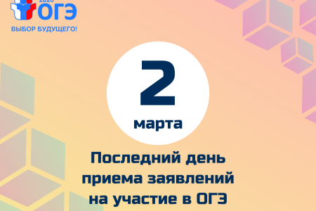 Мегино-Кангаласское районное управление образования напоминает выпускникам 9-х классов и их родителям: последний день подачи заявлений на участие в государственной итоговой аттестации (ОГЭ) — 2 марта 2026 года.